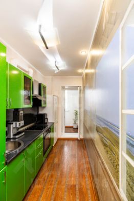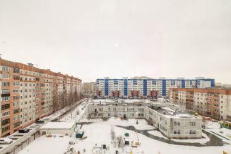 Квартира с частичным ремонтом: на полу линолеум, пластиковые окна, обшитый балкон с установленной рамой. Стены оформлены обоями, а потолки — плиткой ПВХ. Выход на балкон из кухни без барьеров добавляет удобства.