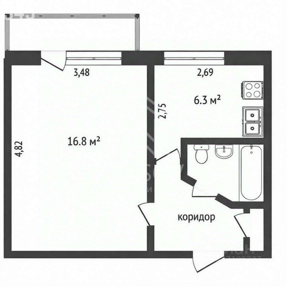 Площадь квартиры 30,5 м². Расположена на 5 этаже 5-этажного дома. Выполнен косметический ремонт. Есть балкон, установлены пластиковые окна. Санузел совмещённый.