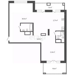Предлагаемая квартира площадью 77.54 м2 расположена на 16-м этаже, обеспечивая захватывающий вид на город.