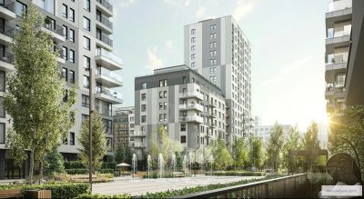 Квартира с кухней-гостиной и двумя спальнями в квартале "Новин". Особенности планировки: балкон, вид во двор, второй санузел, гардеробная, предчистовая отделка.