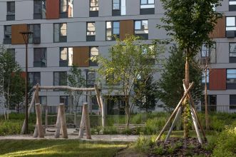 Во дворах предусмотрены сценарии для разных категорий жителей, в том числе и площадки для тихого отдыха с фонтаном и арт объектом.