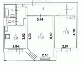 ПЛОЩАДЬ: 54.4м2 + 3.8 м2