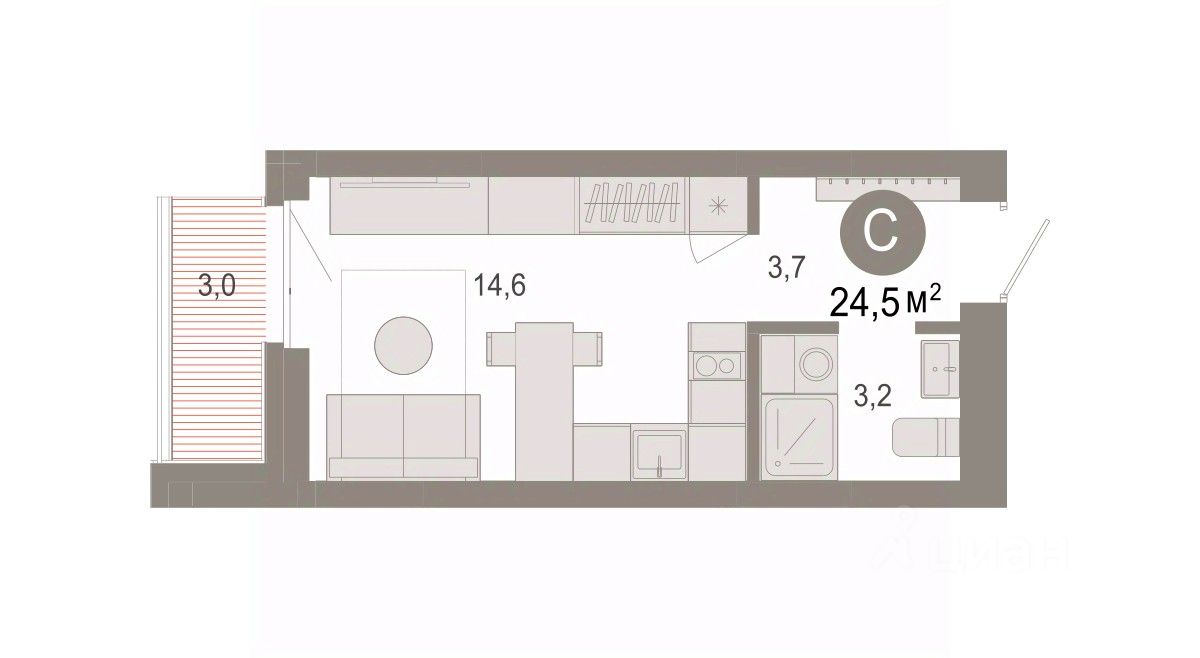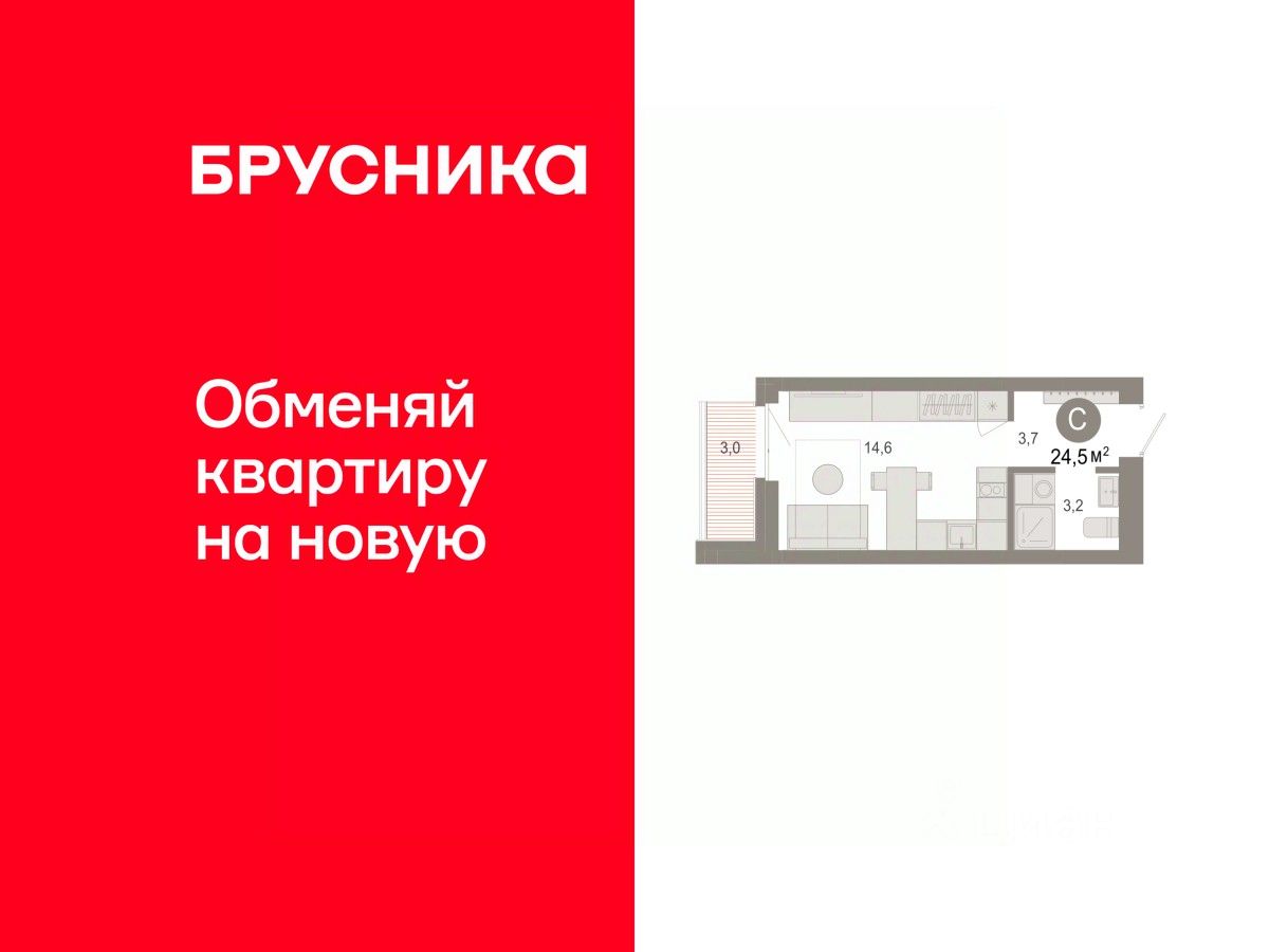 Однокомнатная студия с предчистовой отделкой в ЖК "Нефть" на 6 этаже. Общая площадь: 24.47 кв.м. Высота потолков 2.7 м.