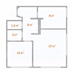 — Площадь:Площадь: 46 кв.м, кухня-гостиная - 17 кв.м, спальня - 12 кв.м, кабинет - 8 кв.м"