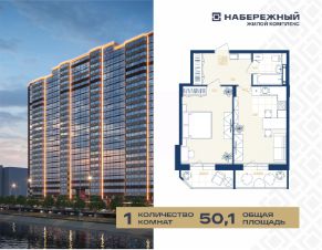 ДОМ ГОТОВ. КЛЮЧИ В ДЕНЬ СДЕЛКИ! Продается уютная однокомнатная видовая квартира 349 площадью 50,1 кв.м. с большой лоджией и просторной кухней-гостиной площадью 18 кв.м., в жилом комплексе "Набережный". Общая площадь квартиры — 50,1 кв.м., жилая — 30,5 кв.м. Это идеальное место для комфортной жизни вашей семьи!