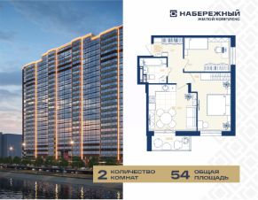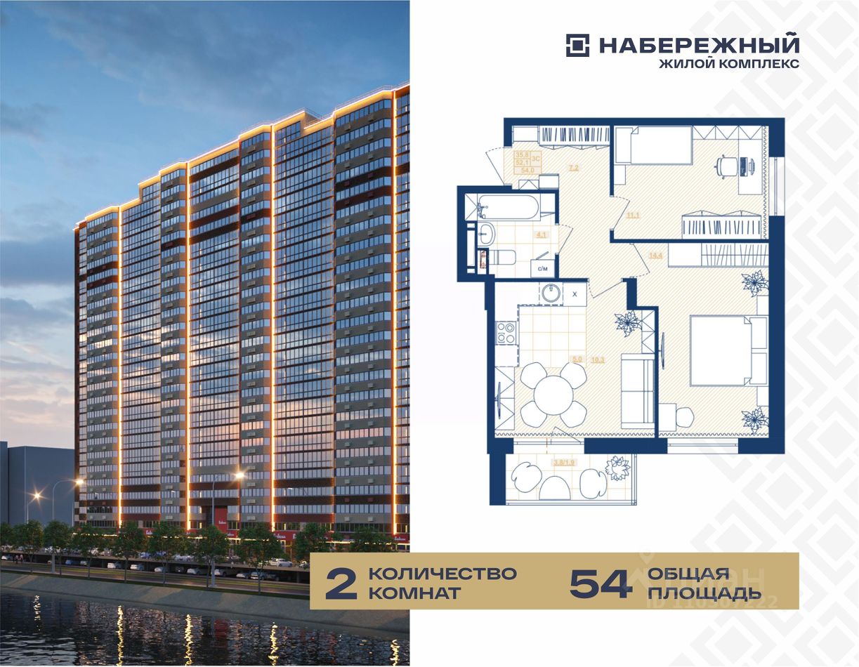 ДОМ ГОТОВ. КЛЮЧИ В ДЕНЬ СДЕЛКИ! Продается уютная двухкомнатная видовая квартира 87 площадью 54 кв.м. с большой лоджией и кухней-гостиной площадью 15,3 кв.м., двумя комнатами площадью 14,4 м2 и 11,1 м2, в жилом комплексе "Набережный". Общая площадь квартиры — 54 кв.м., жилая — 35,8 кв.м. Это идеальное место для комфортной жизни вашей семьи!