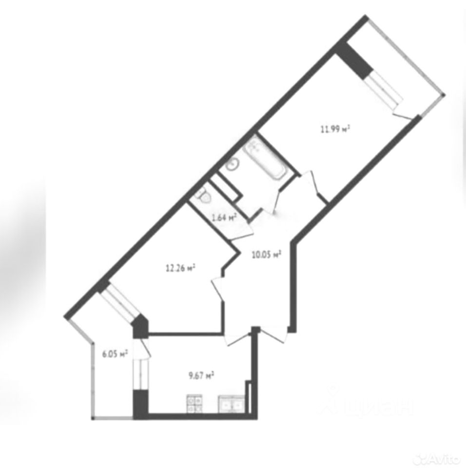 Планировка 2х комнатная НА ДВЕ СТОРОНЫ