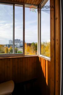 Имеется застеклённый балкон, отделан деревом
