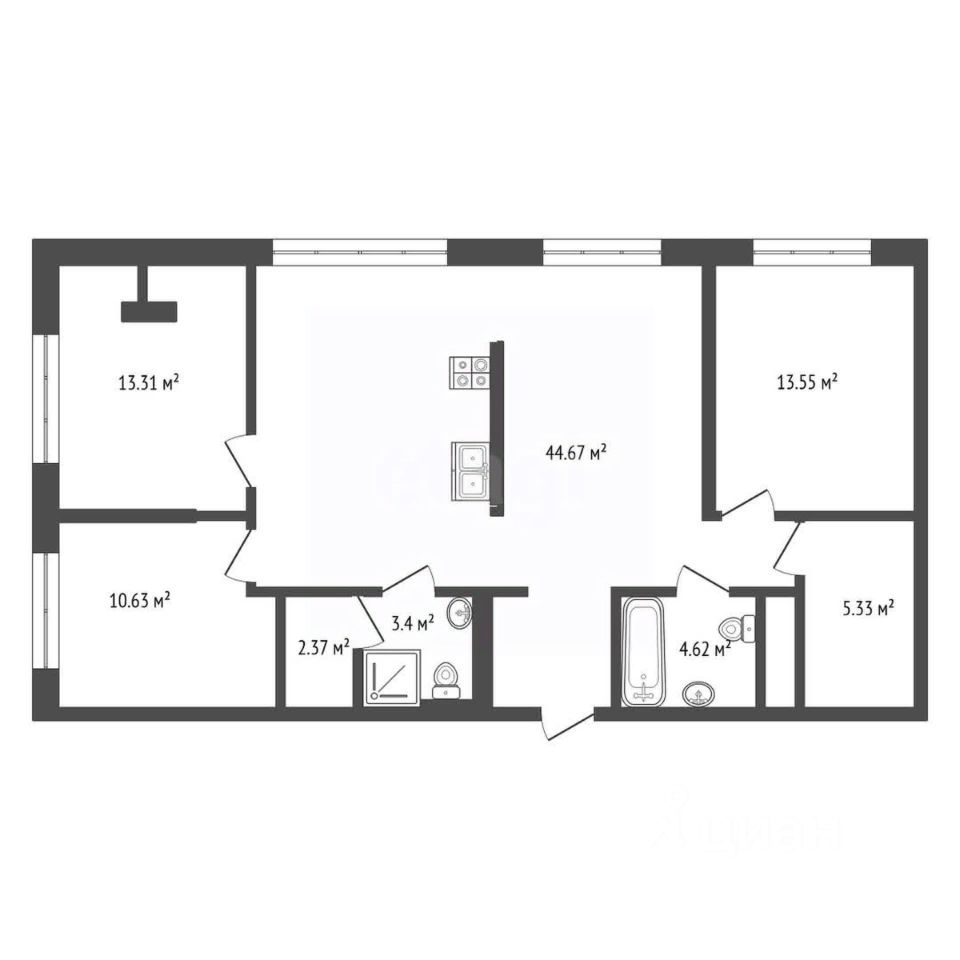 Просторная трехкомнатная квартира площадью 97 кв. м расположена на шестом этаже современного жилого комплекса с развитой инфраструктурой. Объект отличается продуманной планировкой: кухня-гостиная площадью 45 кв. м образует единое светлое пространство, идеально подходящее для жизни и приема гостей. Ремонт выполнен по индивидуальному дизайн-проекту с использованием качественных материалов, что обеспечивает комфортное проживание без необходимости дополнительных вложений. Квартира оснащена кондиционером, поддерживающим оптимальный микроклимат в любое время года, так же в квартире реализована домашняя сауна. Жилой комплекс предлагает удобства для всех категорий жильцов: детская площадка, колясочная и специальная площадка для выгула собак делают территорию комфортной для семей с детьми и домашними животными. Отсутствие балкона компенсируется панорамными окнами, наполняющими помещения естественным светом. Район отличается хорошей транспортной доступностью — в шаговой доступности находятся остановки общественного транспорта, обеспечивающие быстрый выезд в любую часть города. Близость школ, детских садов, супермаркетов и фитнес-центров добавляет объекту привлекательности для тех, кто ценит время и комфорт. Состояние квартиры позволяет заселяться сразу после оформления сделки, что особенно важно для покупателей, ищущих готовое жилье без длительных ожиданий. Рациональная планировка и продуманная инфраструктура делают этот вариант оптимальным для тех, кто ищет современное жилье в хорошо развитом районе.