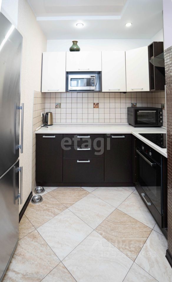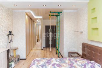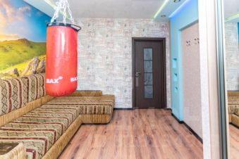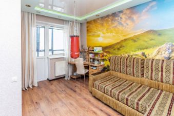 В ней есть 2 полноценные спальни и просторная кухня-гостиная. Выполнен косметический ремонт, все делалось для себя, поэтому использовались только дорогие и качественные материалы. Прихожая представляет собой просторный длинный коридор, выложенный итальянской плиткой из керамогранита. Потолки натяжные, есть встроенный большой шкаф-купе. Далее в большой кухне-гостиной можно выделить три зоны: для отдыха, для приема пищи и рабочую кухонную зону.