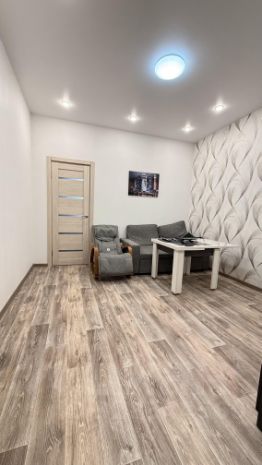 В квартире выровнены стены, натяжные потолки. Санузел раздельно, отделка кафель. Бойлер новый на 100 литров. В туалете и ванной комнате теплые полы.