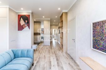 Продается стильная трехкомнатная квартира в Сургуте, Восточный район, микрорайон 21, Тихий проезд, 2/1 (River House) Общая площадь квартиры составляет 98.8 кв. м, кухня — 26.3 кв. м. Квартира расположена на 5 этаже 6-этажного дома. Высокие потолки в 3 метра создают ощущение простора и комфорта.