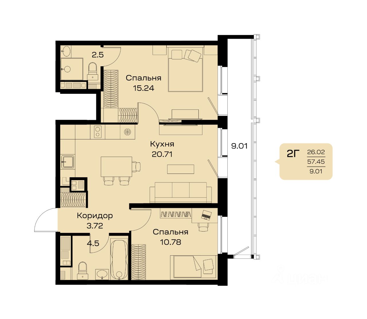 26 м²