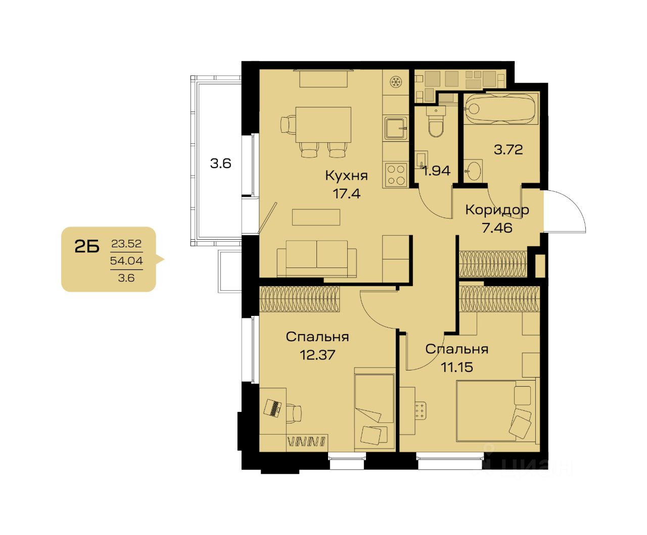 Продаётся 2-комнатная квартира в строящемся доме (Дом 1), срок сдачи: I-кв. 2027, общей площадью 57.64 кв.м., на 18 этаже. Новый жилой комплекс "Симфония 18" от застройщика "СЗ Строй Актив" расположен по адресу: г. Сургут, улица Семена Билецкого.