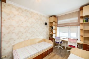 Квартира продаётся с полным наполнением: кухонный гарнитур со встроенной техникой (посудомойка, духовка, варочная панель, холодильник), стиральная машина, телевизор, сплит-система, два шкафа-купе, диван, две кровати, комод, обеденная группа, два офисных кресла, рабочий уголок в детской. Ничего вывозить не нужно — заезжайте и живите!