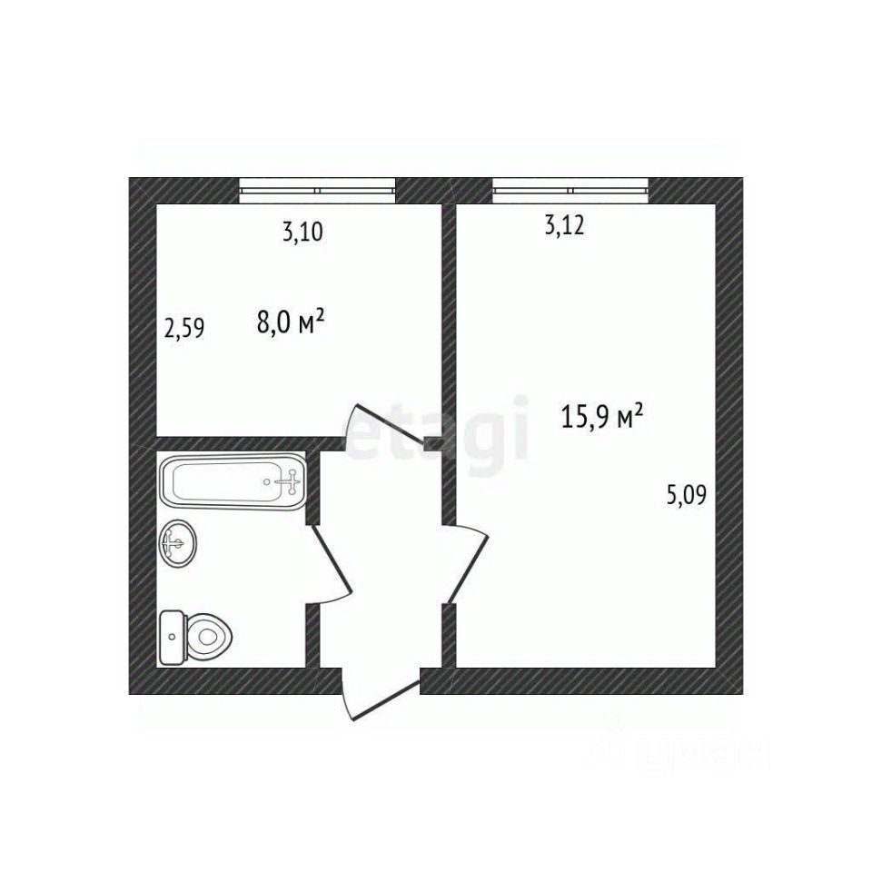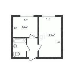 Общая площадь: 31,2 кв.м