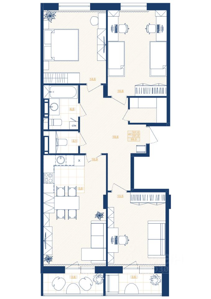 ДОМ ГОТОВ. КЛЮЧИ В ДЕНЬ СДЕЛКИ! Продается уютная трехкомнатная видовая квартира 221 площадью 91,8 кв.м. с большой лоджией, гардеробной и кухней-гостиной площадью 16,9 кв.м., тремя комнатами площадью 15,9 м2, 14,4 м2, и 13,5 м2, в жилом комплексе "Набережный". Общая площадь квартиры — 91,8 кв.м., жилая — 60,7 кв.м. Это идеальное место для комфортной жизни вашей семьи!