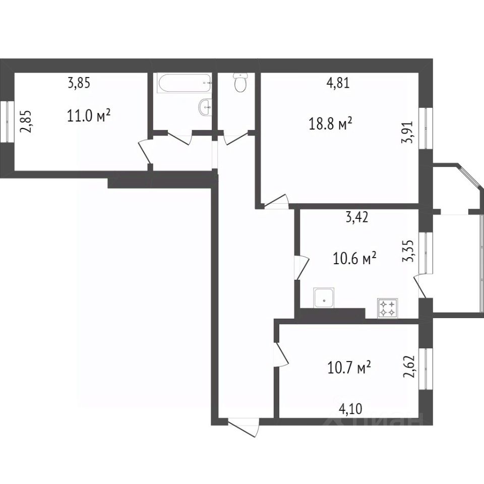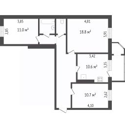 Просторная кухня-гостиная (23 кв.м) и три комнаты — идеальное пространство для жизни, работы и отдыха.
