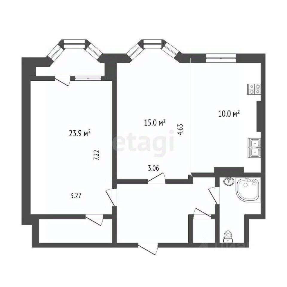 Объединенная кухня-гостиная: Просторное и комфортное пространство для ваших семейных обедов и встреч с друзьями.