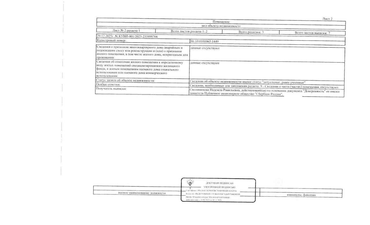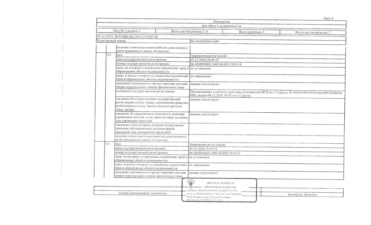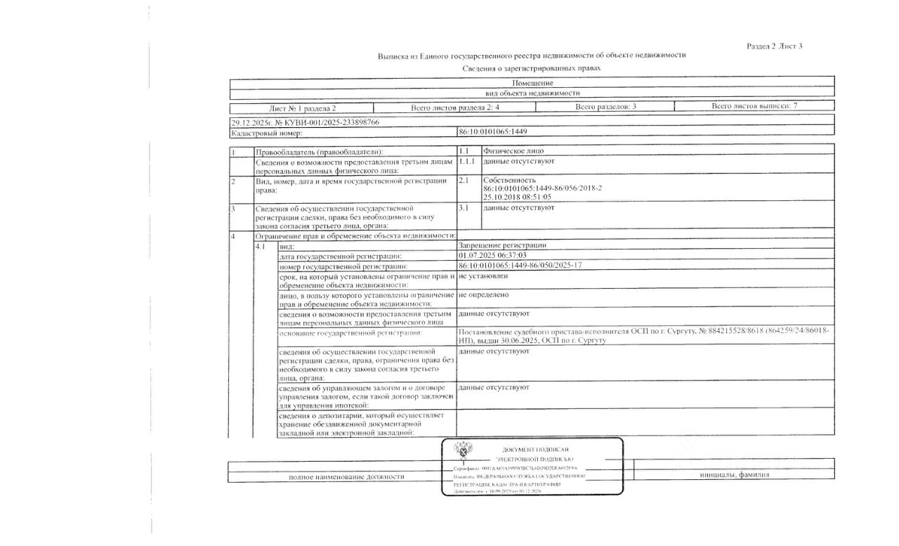 Должник: Федерягина О.А., собственник: Федерягина О.А. Лот: Жилое помещение (квартира), площадь 53,6 кв.м., кадастровый номер: 86:10:0101065:1449, г. Сургут, пр-кт Пролетарский, д.14, кв.91 (информация о зарегистрированных лицах отсутствует, задолженность за кап. ремонт на 03.12.2025 7 т.р.), н/ц: 3570000 р., з-к: 3570 р., код: 0014, рег. 26-28;