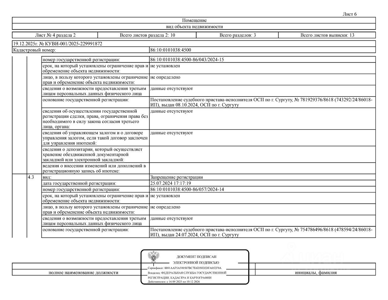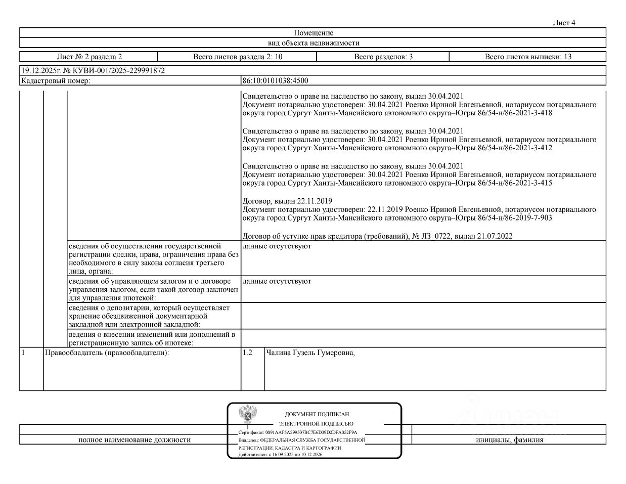 Должник: Чалина Г.Г., собственник: Чалина Г.Г., Чалин А.А., Чалин З.А. Лот: Жилое помещение (квартира), площадь 39,5 кв.м., кадастровый номер: 86:10:0101038:4500, г. Сургут, ул. Республики, д. 69, кв. 38 (информация о зарегистрированных лицах отсутствует, задолженность за кап. ремонт на 14.11.2025 89 т.р., сделка подлежит нотариальному удостоверению), н/ц: 3213680 р., з-к: 3213 р., код: 0014, рег. 26-41;