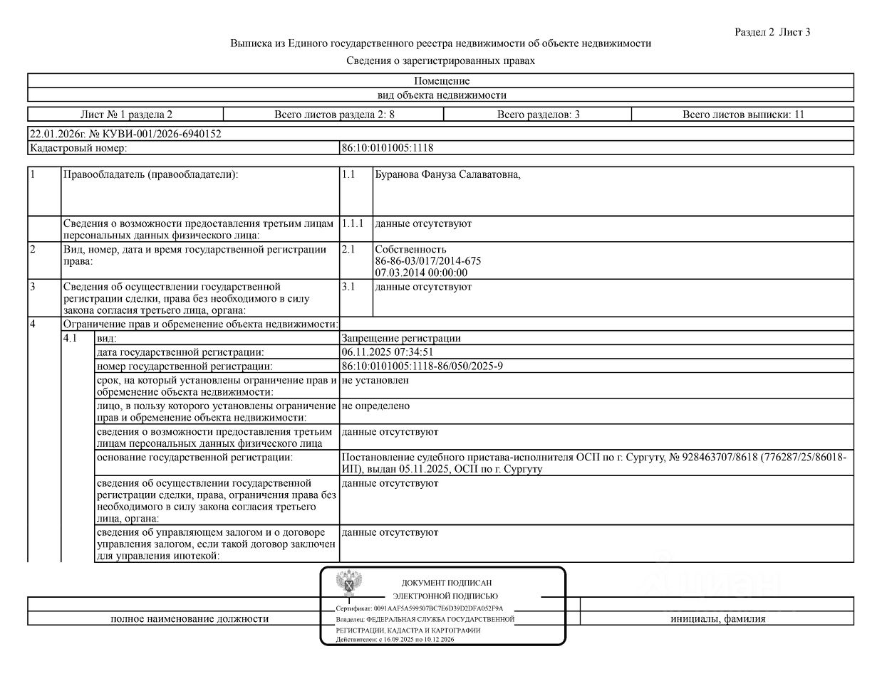 Должник: Буранова Ф.С., собственник: Буранова Ф.С. Лот: Жилое помещение (квартира), площадь 30,5 кв.м., кадастровый номер: 86:10:0101005:1118, г. Сургут, ул. Пушкина, д. 18/1, кв. 80 (информация о зарегистрированных лицах отсутствует, задолженность за кап. ремонт на 14.11.2025 32 т.р.), н/ц: 2286840 р., з-к: 2286 р., код: 0014, рег. 26-45;