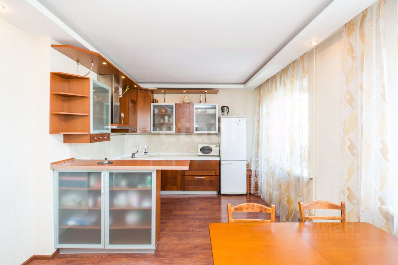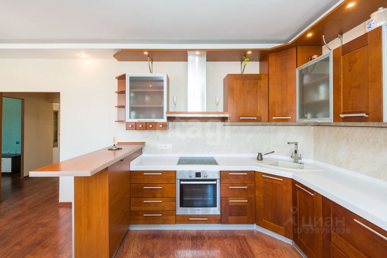 Сделан качественный ремонт из современных материалов. На полу- шпонированный ламинат. Кухня с итальянскими фасадами фирмы "Мария". Есть постирочная, гардеробная, которая расположена в родительской спальне, что очень удобно. Так же есть и застекленная лоджия.