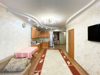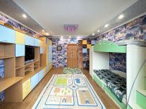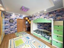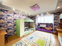 Квартира евро трёхкомнатная с дизайнерским ремонтом и узаконенной перепланировкой, 2 санузла, балкон и лоджия. Мастер-спальня со своим санузлом и выходом на балкон, большая кухня-гостинная, кухня с посудомойкой, есть встроенный скрытый сейф. В огромной шикарной детской есть три рабочих места и очень много мест предусмотрено для хранения вещей. Возле детской комнаты второй санузел. Очень много полезной площади в квартире, в прихожей большой и вместительный шкаф-купе. Также есть тамбур в общей прихожей с соседями, где можно разуваться и оставлять вещи, очень удобно. Дом теплый, кирпичный с прекрасной шумоизоляцией.