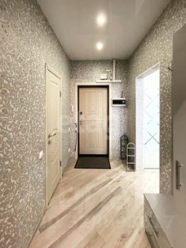 Напольное покрытие во всей квартире - ламинат. Потолки натяжные. На кухне обои под покраску (можно без проблем перекрасить, по своему желанию), а в остальных помещениях обычные качественные обои с интересной фактурой.