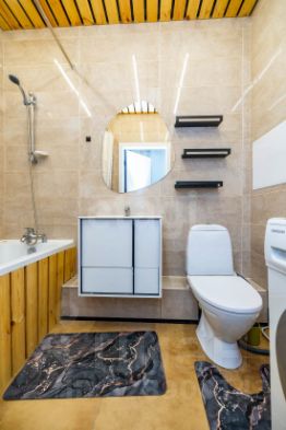 В квартире выполнен капитальный ремонт, все делали для себя из качественных материалов - натяжной потолок, на полу ламинат, санузел выложен керамогранитом.