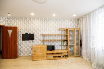 В квартире выполнен косметический ремонт. Полы выровнены и покрыты линолеумом, стены оклеены обоями, потолки во всех помещениях натяжные. Квартира очень тихая, соседей не слышно, от лифтовой шахты далеко.