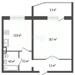 • Планировка: просторная кухня, изолированная комната, встроенный гардероб
