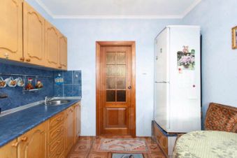 В квартире остается кухонный гарнитур, плита, холодильник, диван.