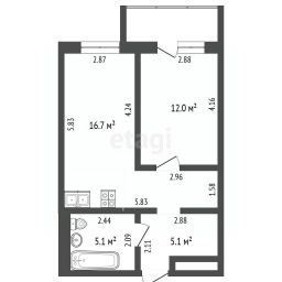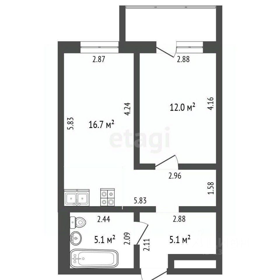 Квартира площадью 44,5 кв. м. плюс балкон.