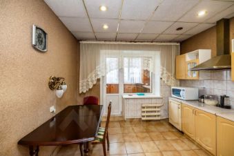 Полы залиты и выровнены, частично покрыты плиткой, линолеумом, ламинатом и пробкой. Окна пластиковые, лоджия обшита вагонкой и остеклена двоным стеклопакетом. Батареи заменены, кроме двух комнат, с регуляторами. Электрика частично заменена на медную. Санузлы отделаны кафелем. В комнатах и прихожей встроенные шкафы. Останется кухонный гарнитур и остальная мебель.