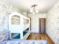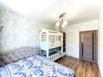 Выполнен современный ремонт: стены, пол выровнены, потолки -натяжные, окна - пластиковые, установлены качественные межкомнатные двери и радиаторы отопления, напольное покрытие-стяжка (ламинат), санузел раздельный, отделан кафельной плиткой, установлены счётчики ГХВС.