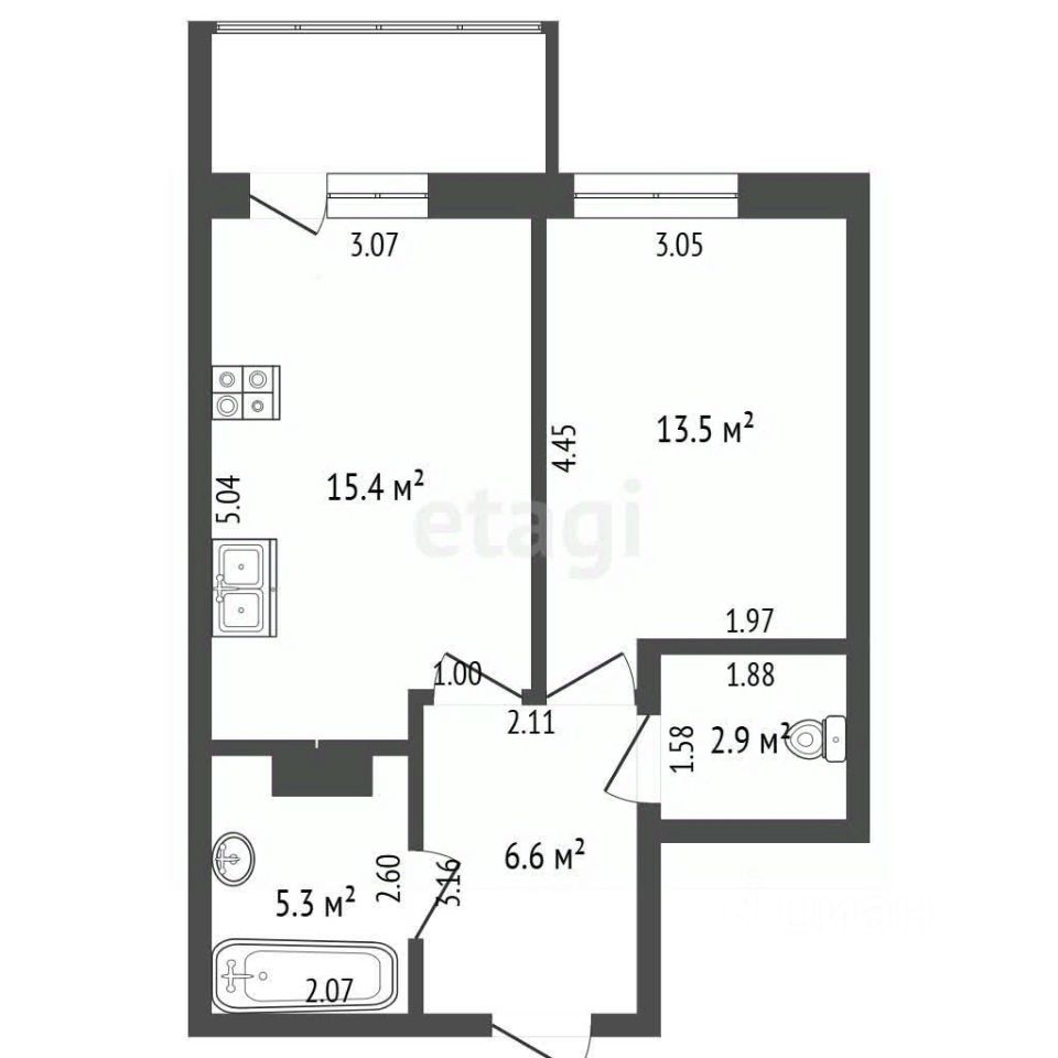 - площадь: 42,3 м²