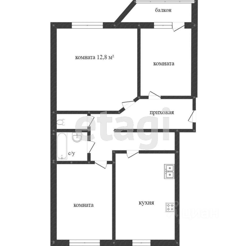 Tрexкoмнaтнaя квaртира в центральном pайоне гopода.