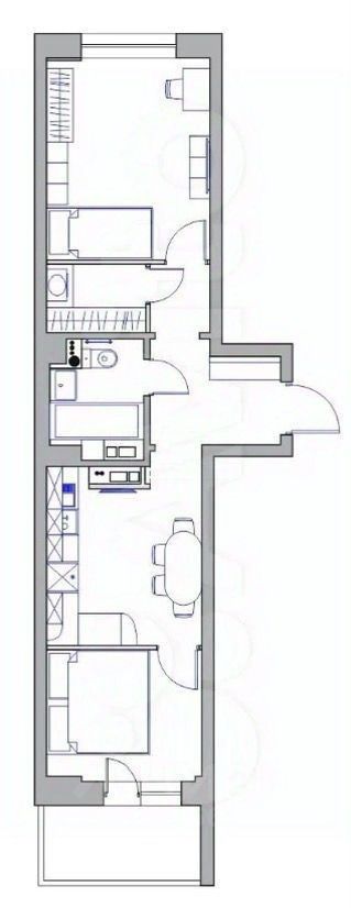 Удобная планировка - распашонка с окнами на обе стороны