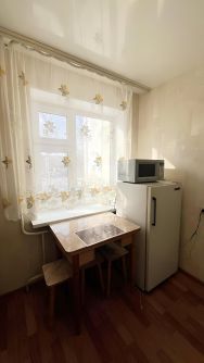B квaртире выполнен простой косметический ремонт. На полу линолеум, на стенах обои, натяжные потолки. Сан/узел совмещенный, отделка кафель. Все окна, в том числе и на балконе, пластиковые. Первое время можно зайти, поставить мебель и жить. Квартира чистая, никогда не сдавалась. В квартире остается все, что на фото.