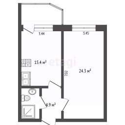 Кухня оборудована всей необходимой техникой, включая водонагреватель. Ванная комната выполнена в светлых тонах и оснащена современной душевой кабиной. В доме есть пассажирский и грузовой лифты, а также мусоропровод.