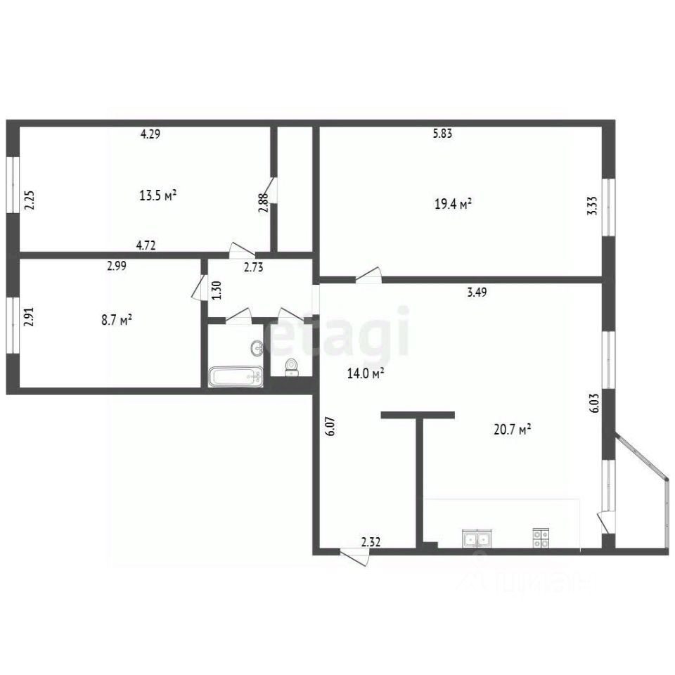 Общая площадь — 86,1 кв. м. Этаж — 3 из 5.