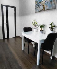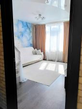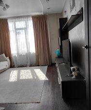 В квартире остаётся встроенная кухня, стенка, шкаф-купе, диван в хорошем состоянии, стол, стулья. Техника: встроенный духовой шкаф, варочная панель.