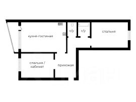 Кухня-гостиная + 2 спальни (одну можно использовать как кабинет или детская)