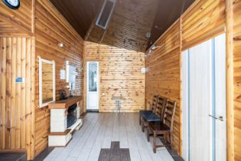 Два санузла с гигиеническим душем. Окна пластиковые, арочные. В гостиной есть действующий камин. Для любителей банных посиделок имеется сауна, ванна-джакузи, комната отдыха.