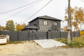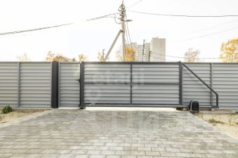 Участок огорожен забором из профлиста, ворота на участке - откатные, в гараже - автоматические, секционные.