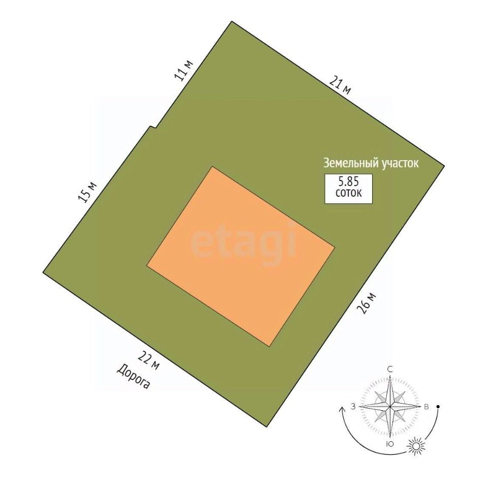 Общая площадь дома = 186,7 м2, площадь участка = 5,9 м2. Земельный участок и жилой дом поставлены на кадастровый учет. На 1 этаже располагается кухня - гостиная и спальня/кабинет, на 2 этаже - 3 спальни.