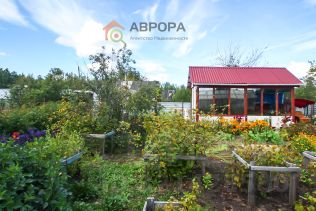 Насаждения: малина, смородина, ирга, много цветов, ухоженная земля