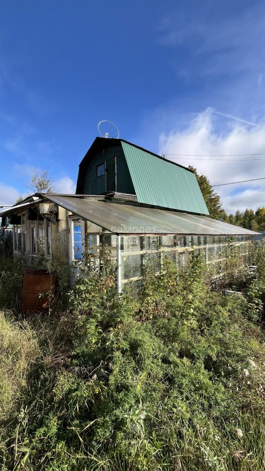На участке стоит небольшой дачный домик площадью 36 м2. Дом из пеноблока, обшит внутри деревом. Отопление печное.