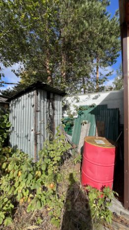 Площадь участка 5,71 сотка, огорожен, лицевая сторона из профлиста, есть ворота распашные и откатные. Боковые стороны от соседей забор деревянный.